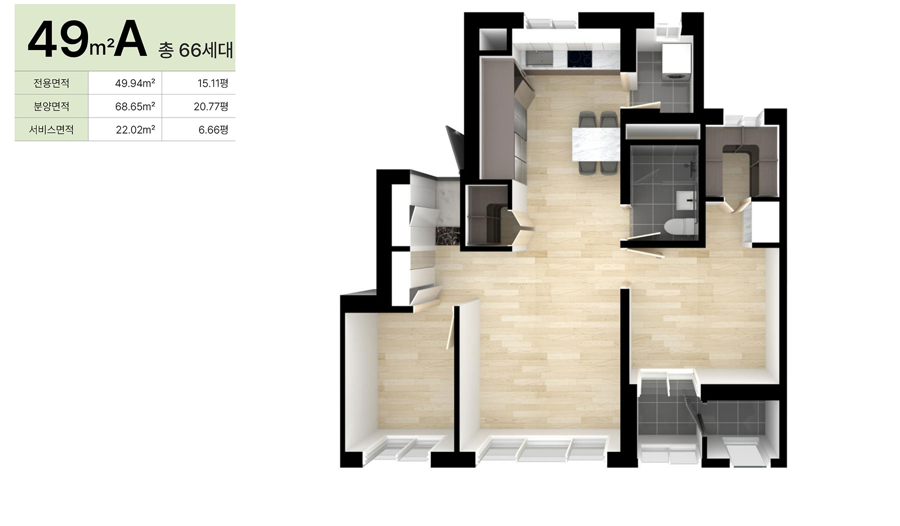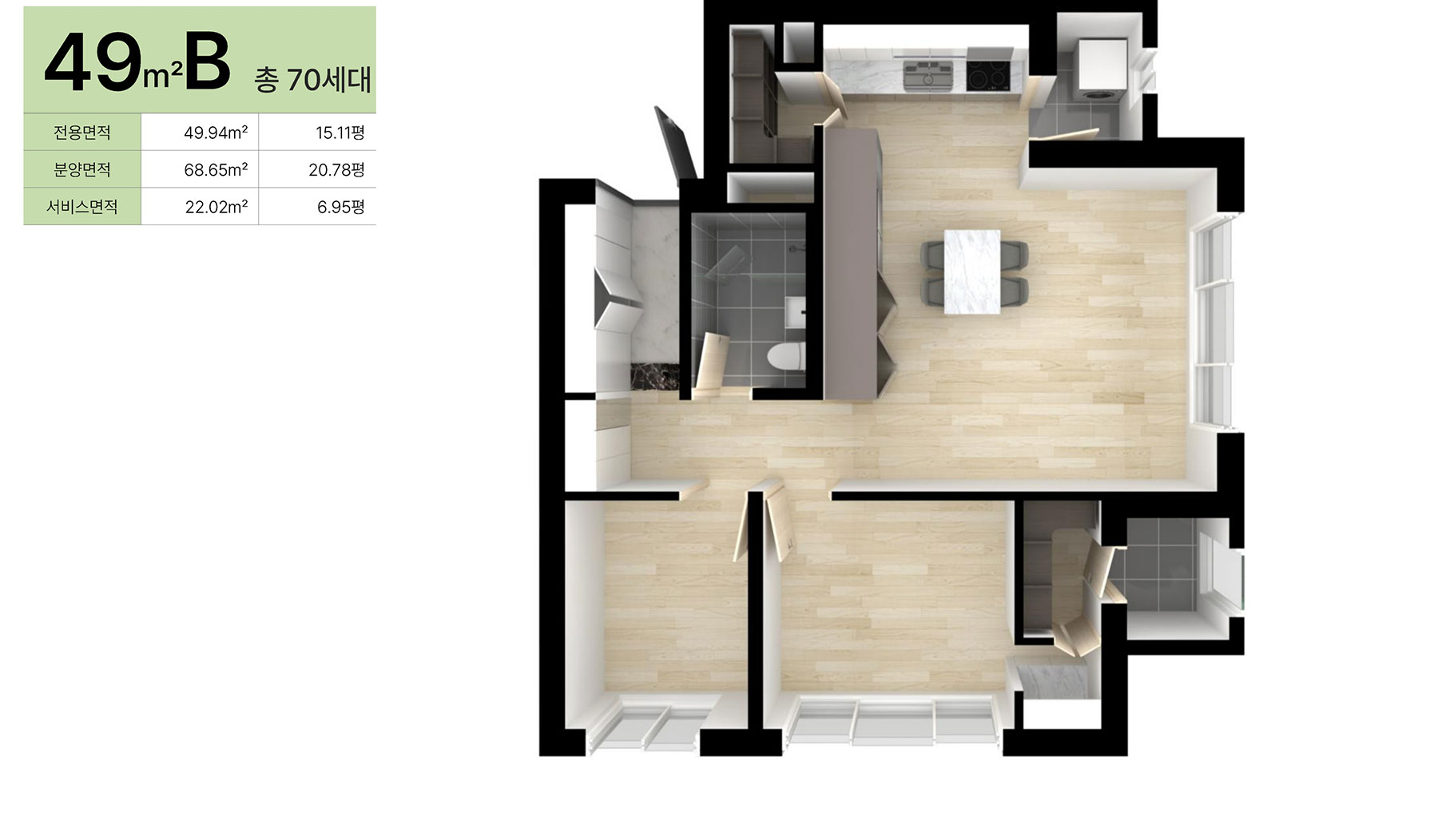 효율적인 동선과 트렌디한 감각이 돋보이는 1~2인 가구 최적화 맞춤 평면